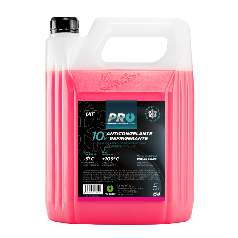 Liquide de refroidissement prêt à l'emploi, formulé à base d'éthylène glycol et d'un mélange d'inhibiteurs de corrosion à technologie inorganique (IAT), enrichi d'additifs prévenant la cavitation et l'entartrage, d'agents antimousse et d'une réserve neutralisante assurant une protection efficace du moteur, du radiateur, de la pompe à eau et du système de refroidissement.